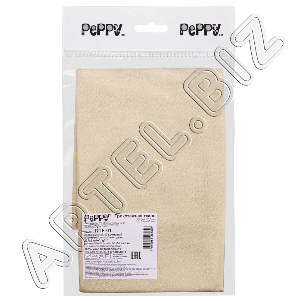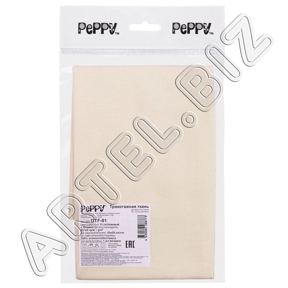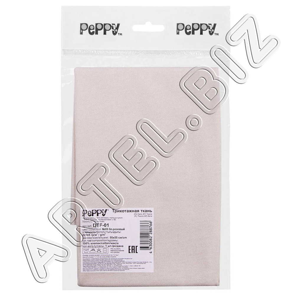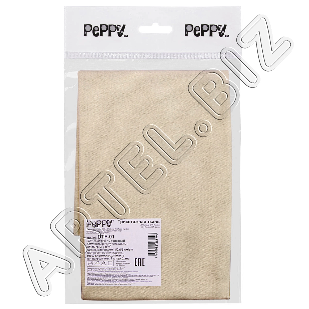 PEPPY Трикотаж кукольный DTF-01 ФАСОВКА 50x55 см 225 г/кв.м +/- 5 100% хлопок №12 телесный