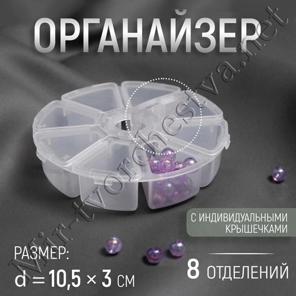 Органайзер для декора, 8 отделений, d = 10,5x3 см, цвет прозрачный