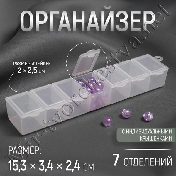 Органайзер для бисера, 15,3x3,4x2,4 см, цвет прозрачный