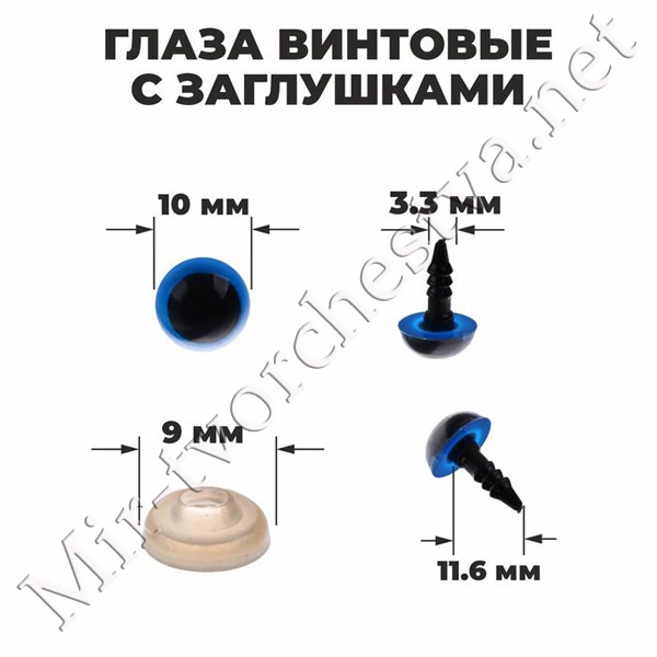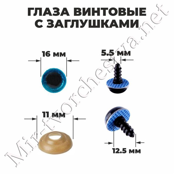 Глаза винтовые с заглушками, «Блёстки», размер 1 шт: 1,6 см, цвет синий
