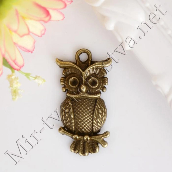 Декор металл для творчества "Сова на ветке" под латунь (СG1216) 2,2х1,7 см 2268708