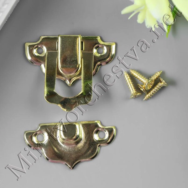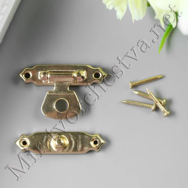 Замок металл для шкатулки золото + гвозд. набор 10 шт 1,6х2,7 см 3539209