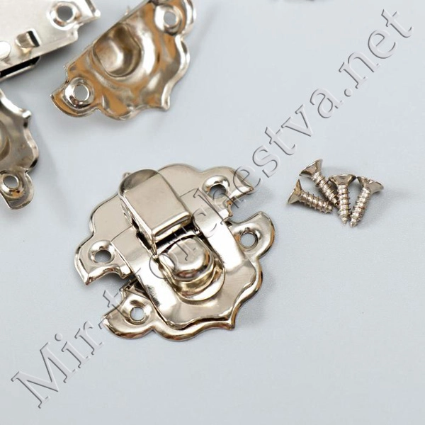 Замок металл для шкатулки серебро + гвозд. 2,9х3 см 3539212