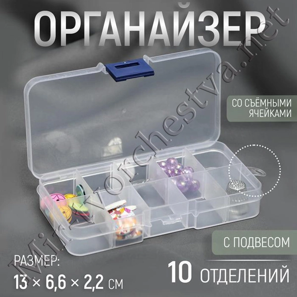 Органайзер для декора, со съёмными ячейками, с подвесом, 10 отделений, 13x6,6x2,2 см