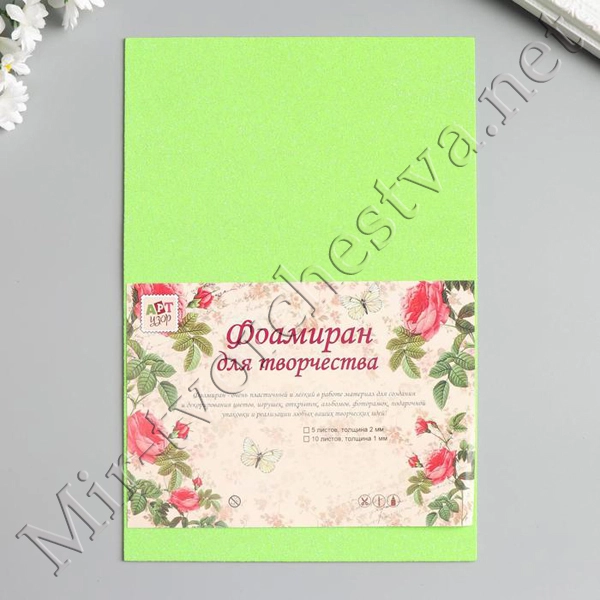 Фоамиран "Неоновый блеск - светло-зелёный" 2 мм формат А4, Арт Узор