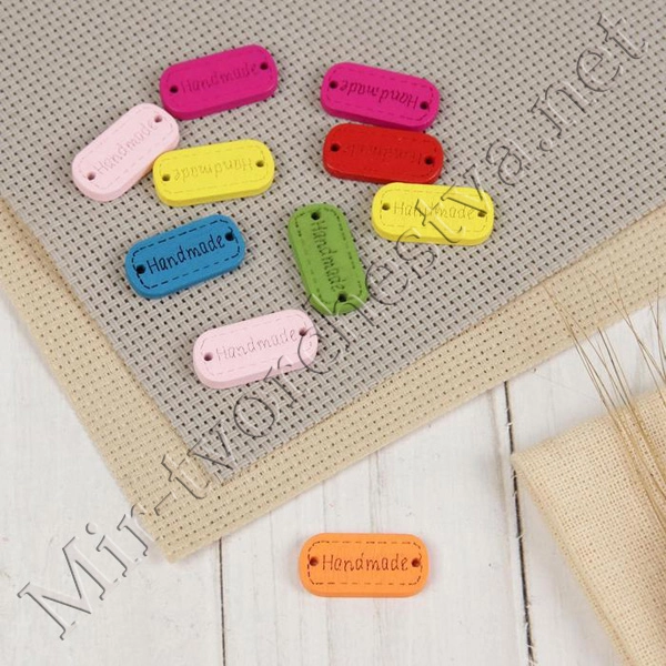 Набор нашивок из дерева «Hand made», 2,4x1,2 см, 10 шт, цвет МИКС