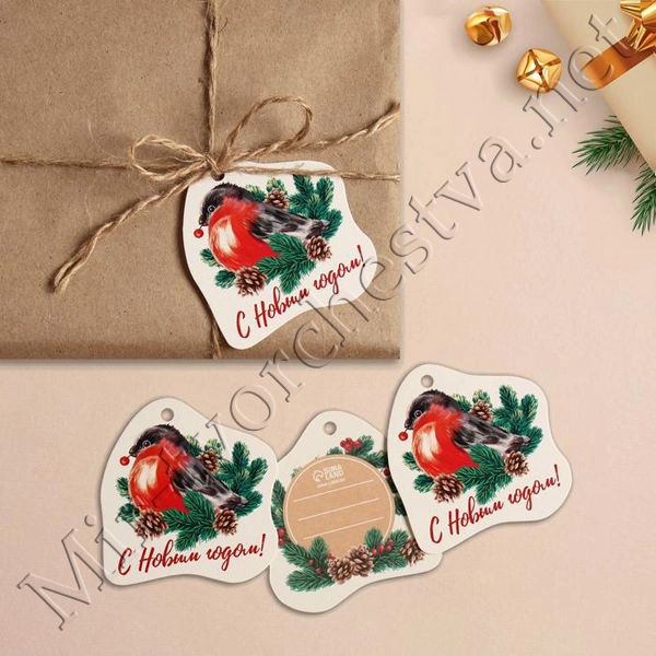 Шильдик на подарок Новый год «Снегирь», 6,5 x6,3 см 4360375