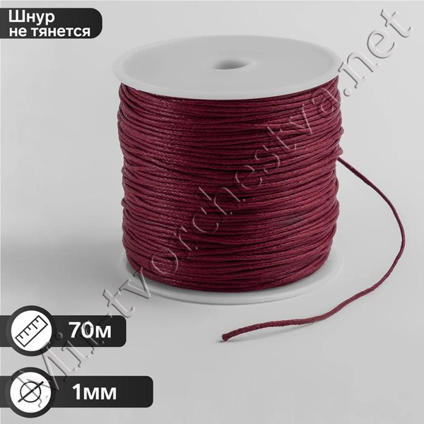Шнур вощёный из полиэстра на бобине, d=1мм, цвет Красный