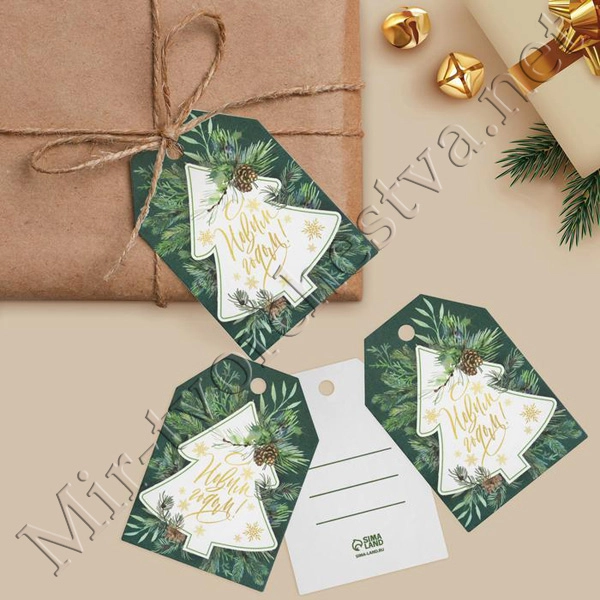 Открытка-шильдик на подарок «Ёлочка», картон 5x7см (набор 5шт.)