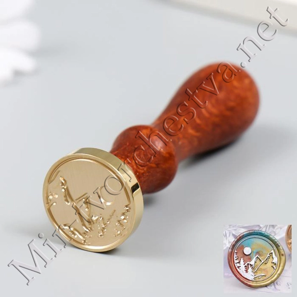 Печать для сургуча с деревянной ручкой "Лунная ночь в горах" 9х2,5х2,5 см 9352496