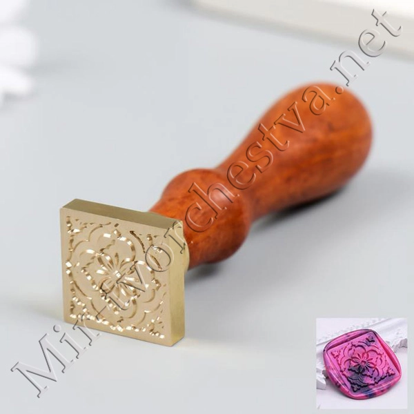 Печать для сургуча с деревянной ручкой "Ажурный цветок" 9х2,2х2,2 см 9352508