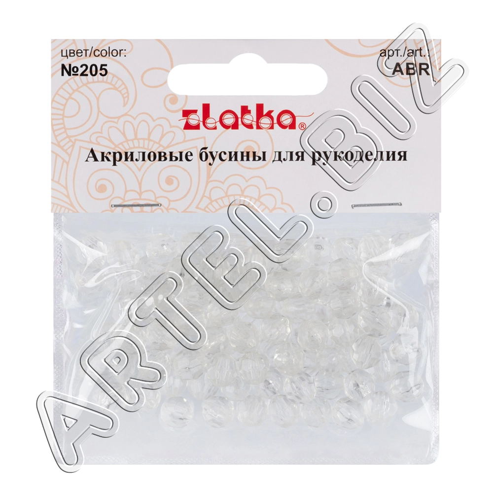 Бусина "Zlatka" акрил ABR 8 мм 25 г 205 прозрачный