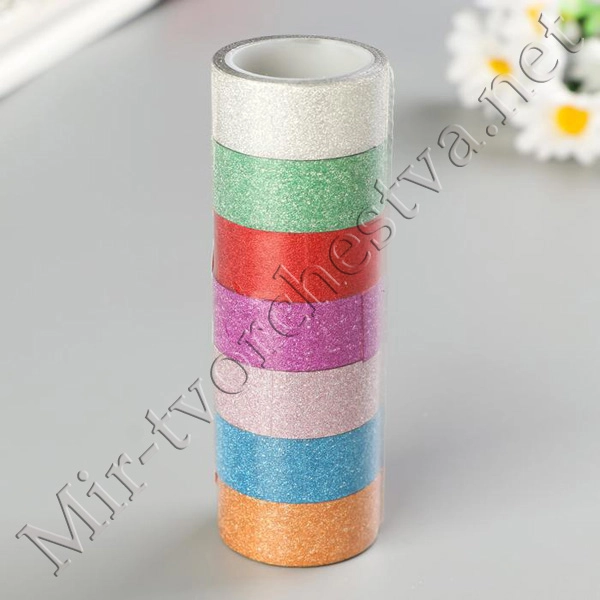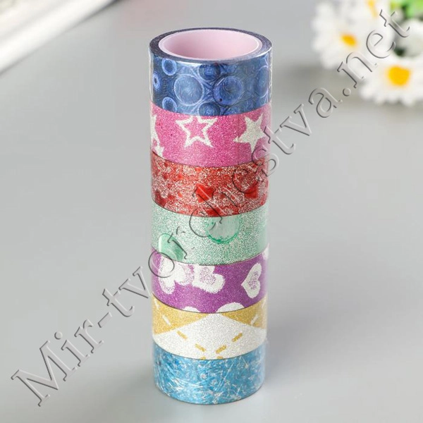 Клейкие ленты полимерные для декора с блестками "ИНТЕНСИВ", 15 ммx3 м (набор 7 шт) 5132690