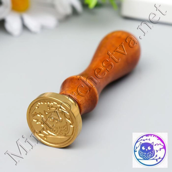 Печать для сургуча с деревянной ручкой "Совёнок на веточке" 9х3х3 см 5278937