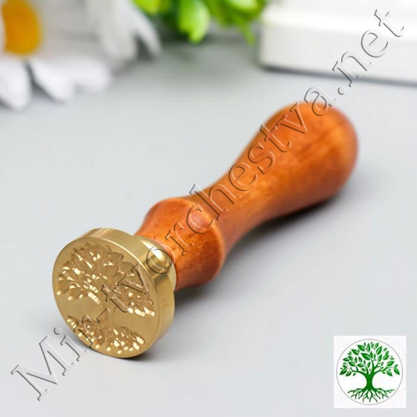 Печать для сургуча с деревянной ручкой "Зелёное дерево" 9х2,5х2,5 см 5278953