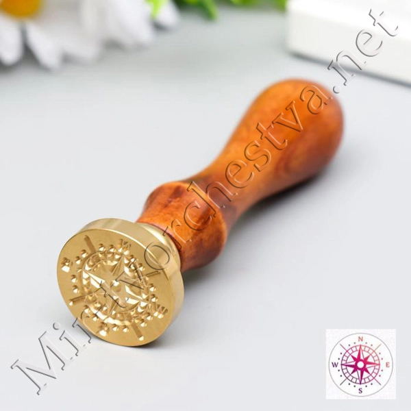 Печать для сургуча с деревянной ручкой "Компас" 9х2,5х2,5 см 5278988