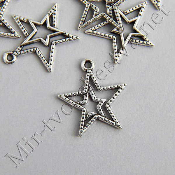 Декор для творчества металл "Двойная звезда" серебро 2,3х2 см 5279226