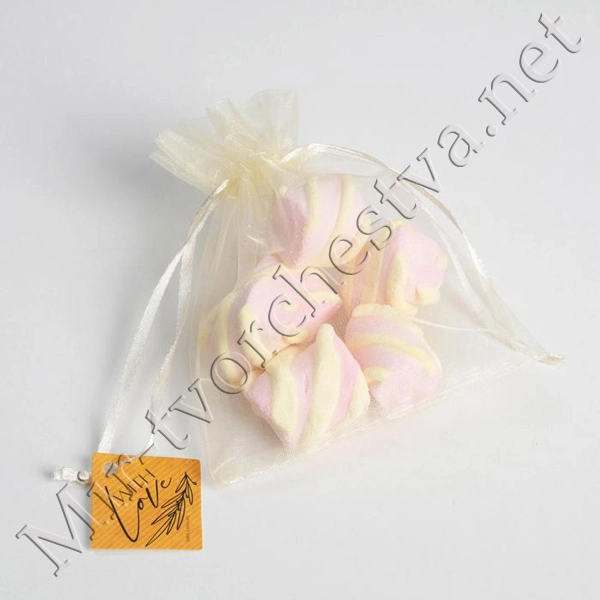Мешочек подарочный органза бежевый «С любовью», с шильдиком, 10x12 см 5374826