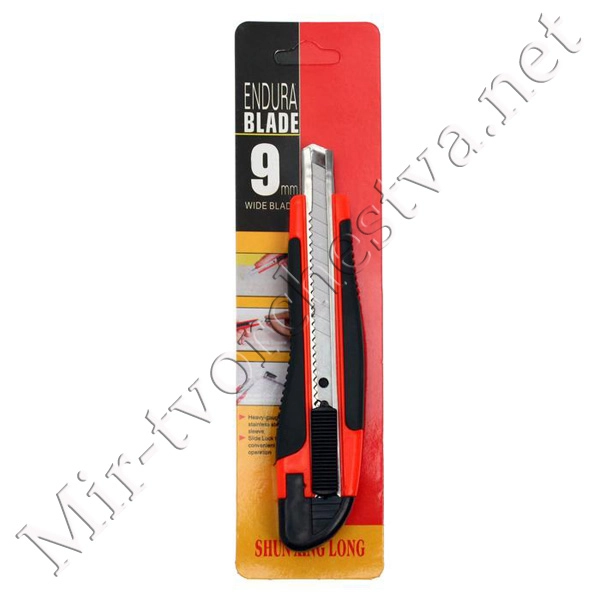 Нож канцелярский, лезвие 9 мм, корпус пластик, с резиновым держателем, с металл., направляющей, фиксатор