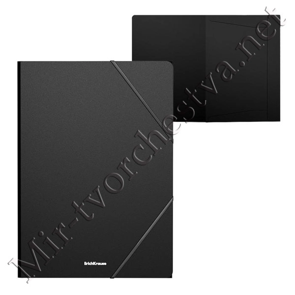 Папка на резинке A4, 400 мкм, ErichKrause Matt Classic, корешок 5 мм, до 300 листов, тиснение "песок", чёрная