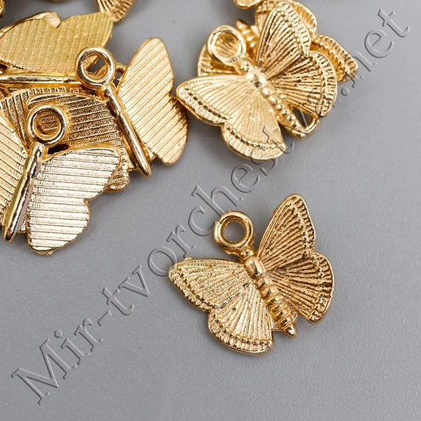 Декор для творчества металл "Бабочка в полоску" золото 1,2х1 см 6260215