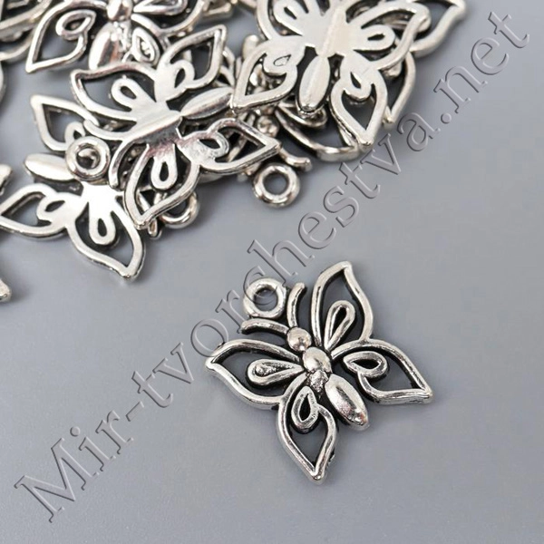 Декор для творчества металл "Бабочка" серебро 1,5х1,3 см 6342577