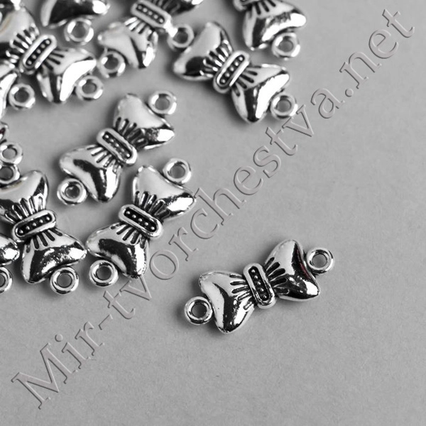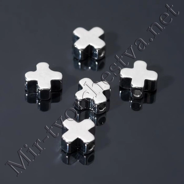 Бусина-разделитель родированная "Крестик", 5*5мм, d(вн.)=1мм, цвет серебро
