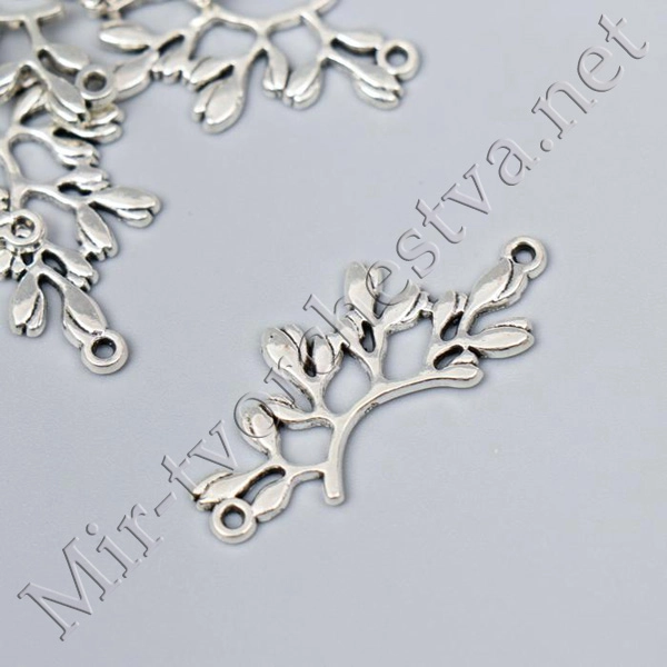 Коннектор для творчества металл 2 ушка "Веточка с листочками" серебро G200B501 3,8х1,7 см 7006226