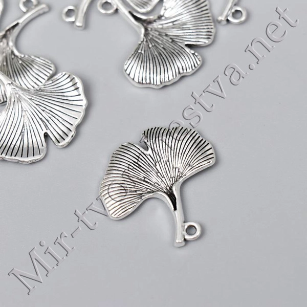 Декор для творчества металл "Лист Гинкго" серебро G256B769 2,5х2,4 см 7006227