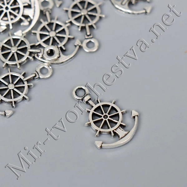 Декор для творчества металл "Якорь и штурвал" серебро G096B578 2,1х1,4 см 7006330