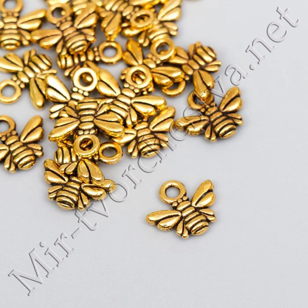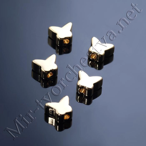 Бусина-разделитель родированная "Бабочка", 4*5мм, d(вн.)=1мм, цвет золото 7072125