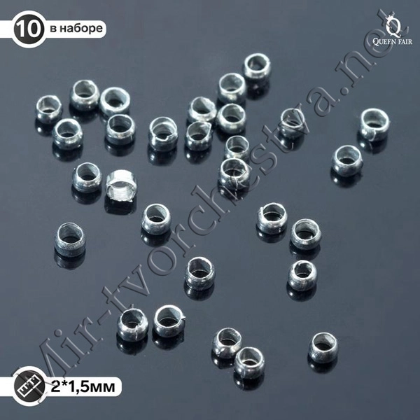 Кримп (зажимная бусина), 2*1.5мм, 30 шт, цвет серебро
