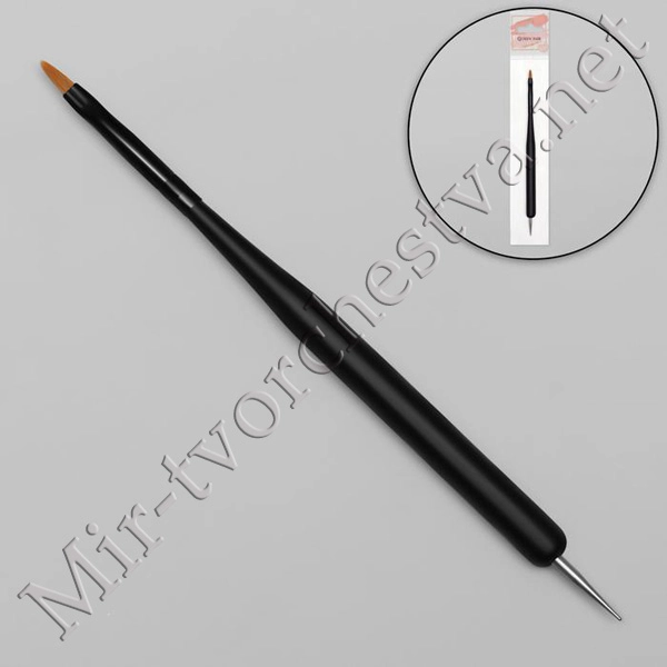 Кисть-дотс для дизайна ногтей, лепесток, 15 см, цвет матовый чёрный
