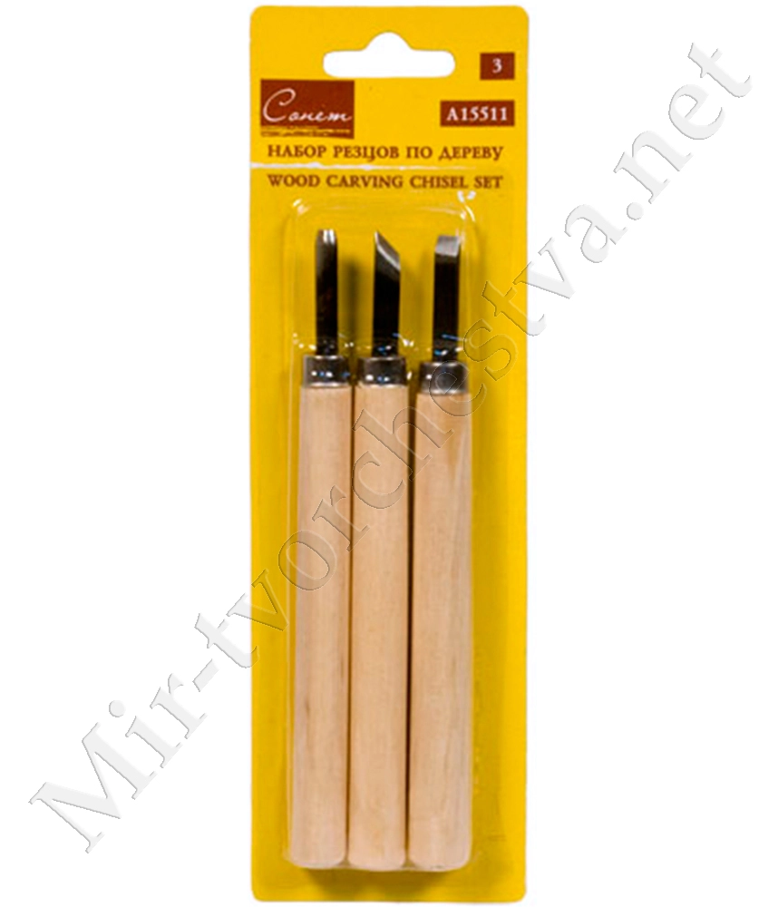 Набор резцов по дереву, 3 шт.,в упак с европодвесом, Сонет