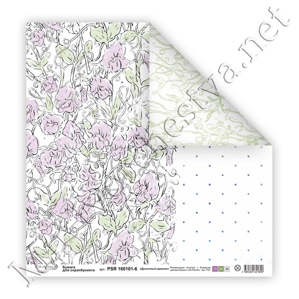 Бумага для скрапбукинга "Душистый горошек" 6, 190 г/кв.м 30.5x30.5 см, Mr. Painter