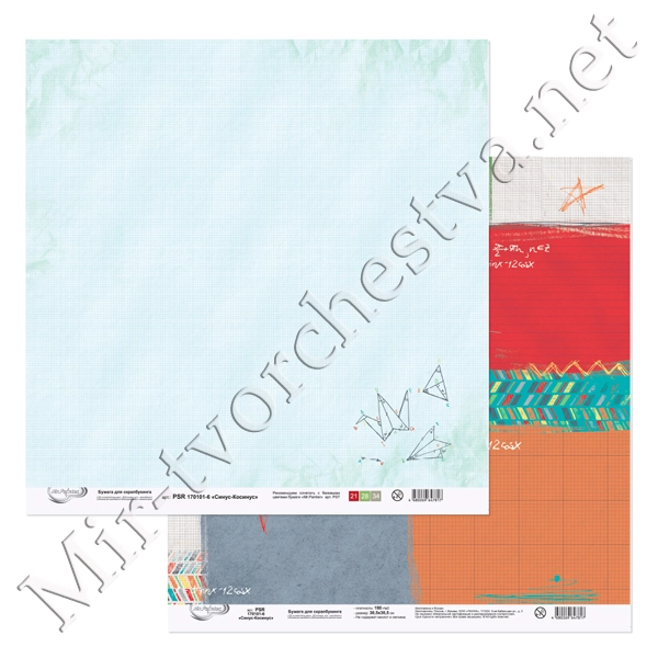 Бумага для скрапбукинга "Синус-Косинус" 6, 190 г/кв.м 30.5x30.5 см, Mr. Painter