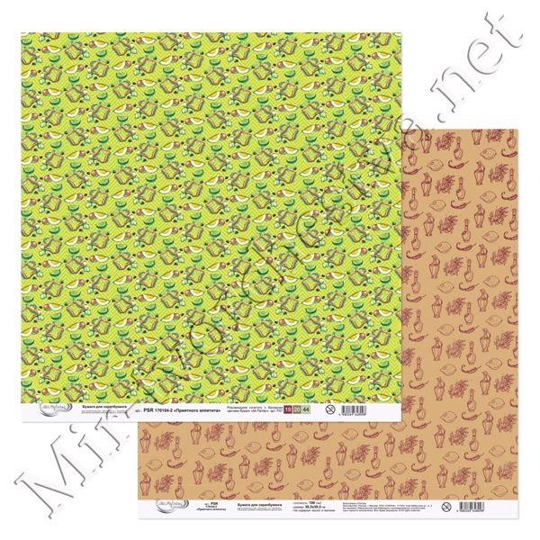 Бумага для скрапбукинга "Приятного аппетита" 2, 190 г/кв.м 30.5x30.5 см, Mr. Painter