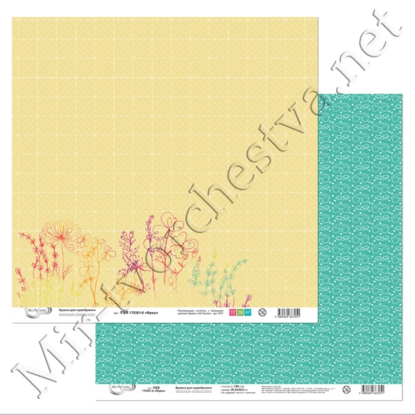 Бумага для скрапбукинга "Фреш" 6, 190 г/кв.м 30.5x30.5 см, Mr. Painter