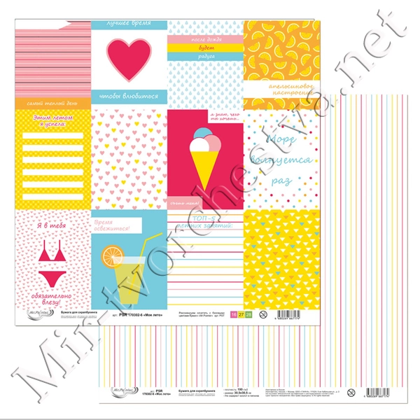 Бумага для скрапбукинга "Мое лето" 6, 190 г/кв.м 30.5x30.5 см, Mr. Painter