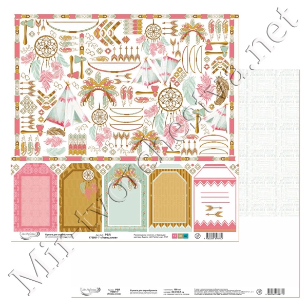Бумага для скрапбукинга "Ловец снов" 4, 190 г/кв.м 30.5x30.5 см, Mr. Painter