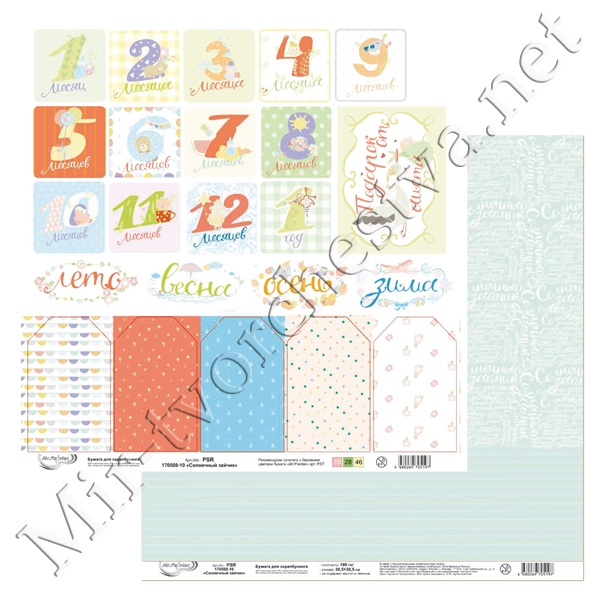 Бумага для скрапбукинга "Солнечный зайчик" 8, 190 г/кв.м 30.5x30.5 см, Mr. Painter