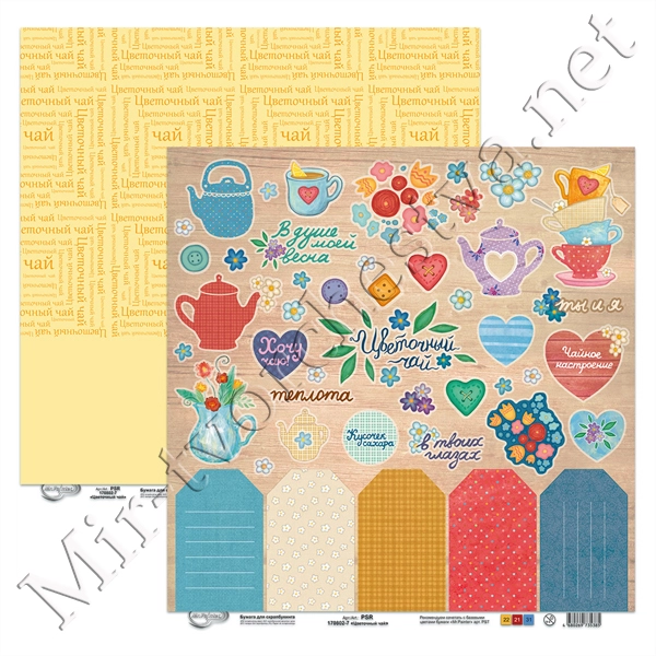Бумага для скрапбукинга "Цветочный чай" 7, 190 г/кв.м 30.5x30.5 см, Mr. Painter