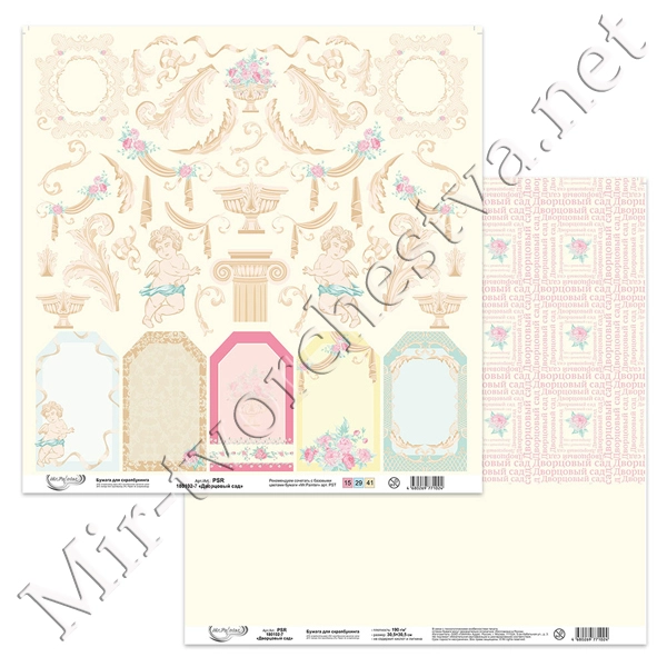 Бумага для скрапбукинга "Дворцовый сад" 7, 190 г/кв.м 30.5x30.5 см, Mr. Painter
