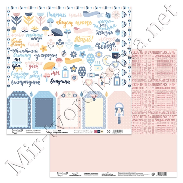 Бумага для скрапбукинга "Скандинавское лето" 7, 190 г/кв.м 30.5x30.5 см, Mr. Painter