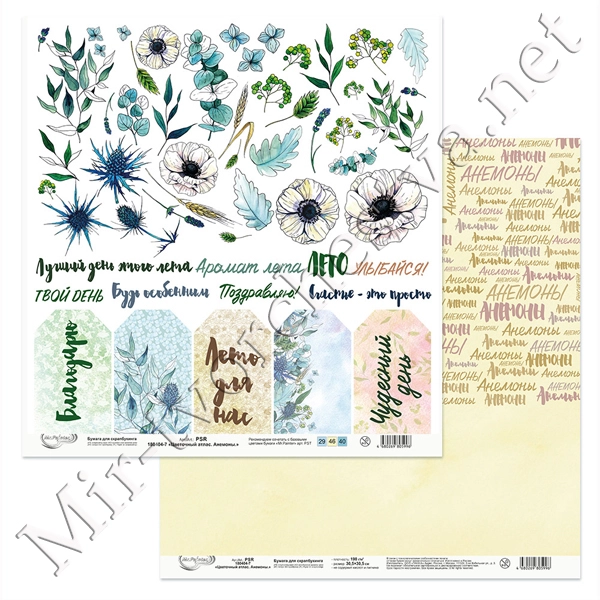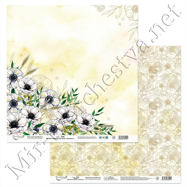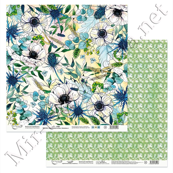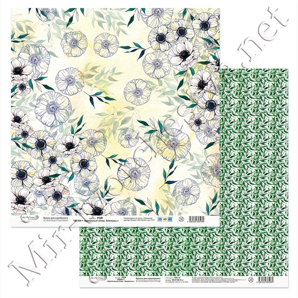 Бумага для скрапбукинга "Цветочный атлас. Анемоны." 1, 190 г/кв.м 30.5x30.5 см, Mr. Painter