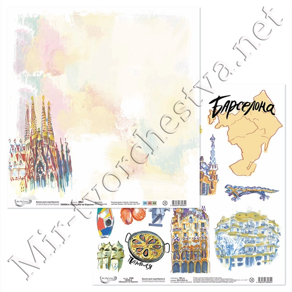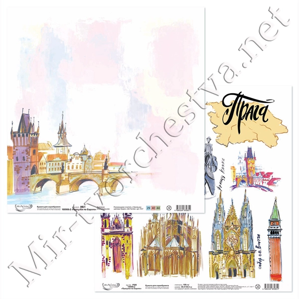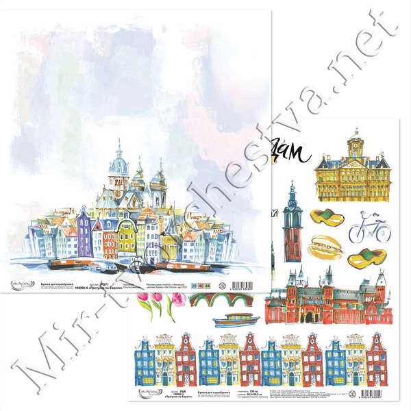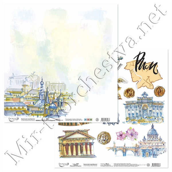 Бумага для скрапбукинга "Прогулки по Европе" 3, 190 г/кв.м 30.5x30.5 см, Mr. Painter