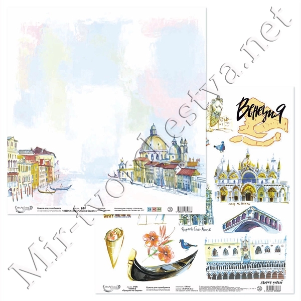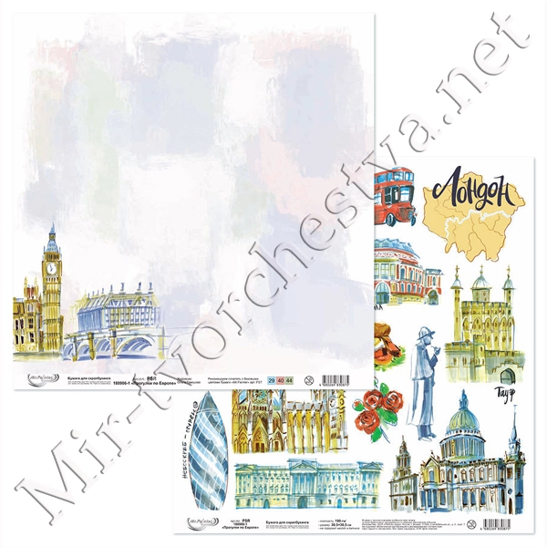Бумага для скрапбукинга "Прогулки по Европе" 2, 190 г/кв.м 30.5x30.5 см, Mr. Painter