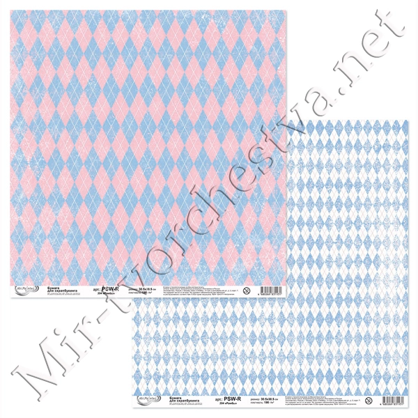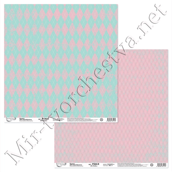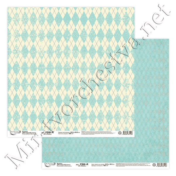 Бумага для скрапбукинга "Ромбы" 302, 190 г/кв.м 30.5x30.5 см, Mr. Painter