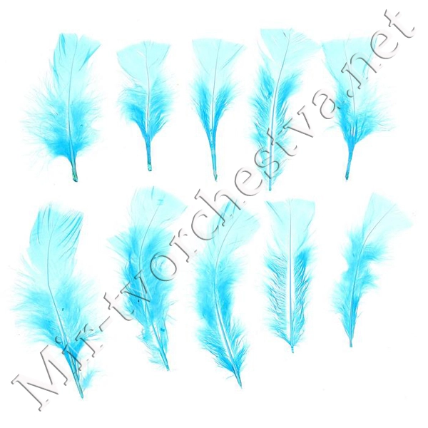Набор перьев для декора 10 шт., размер 1 шт: 10x4 см, цвет голубой