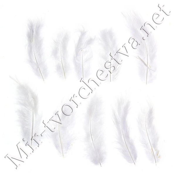 Набор перьев для декора 10 шт., размер 1 шт: 10x4 см, цвет белый